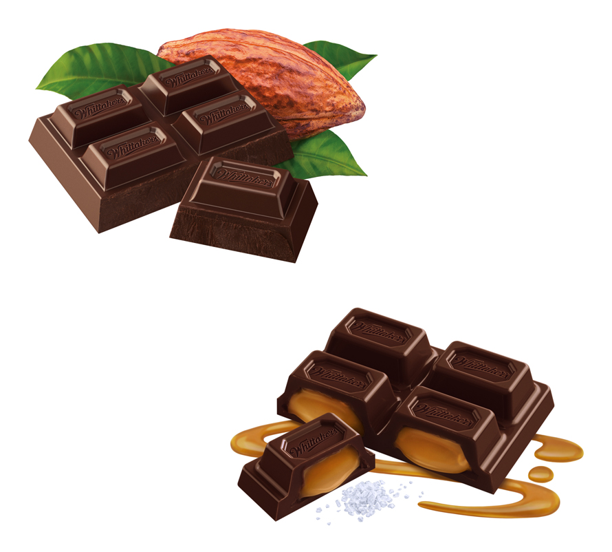 Detailed 3D modelling and image creation of Whittaker's new 250g domestic range chocolate pieces.